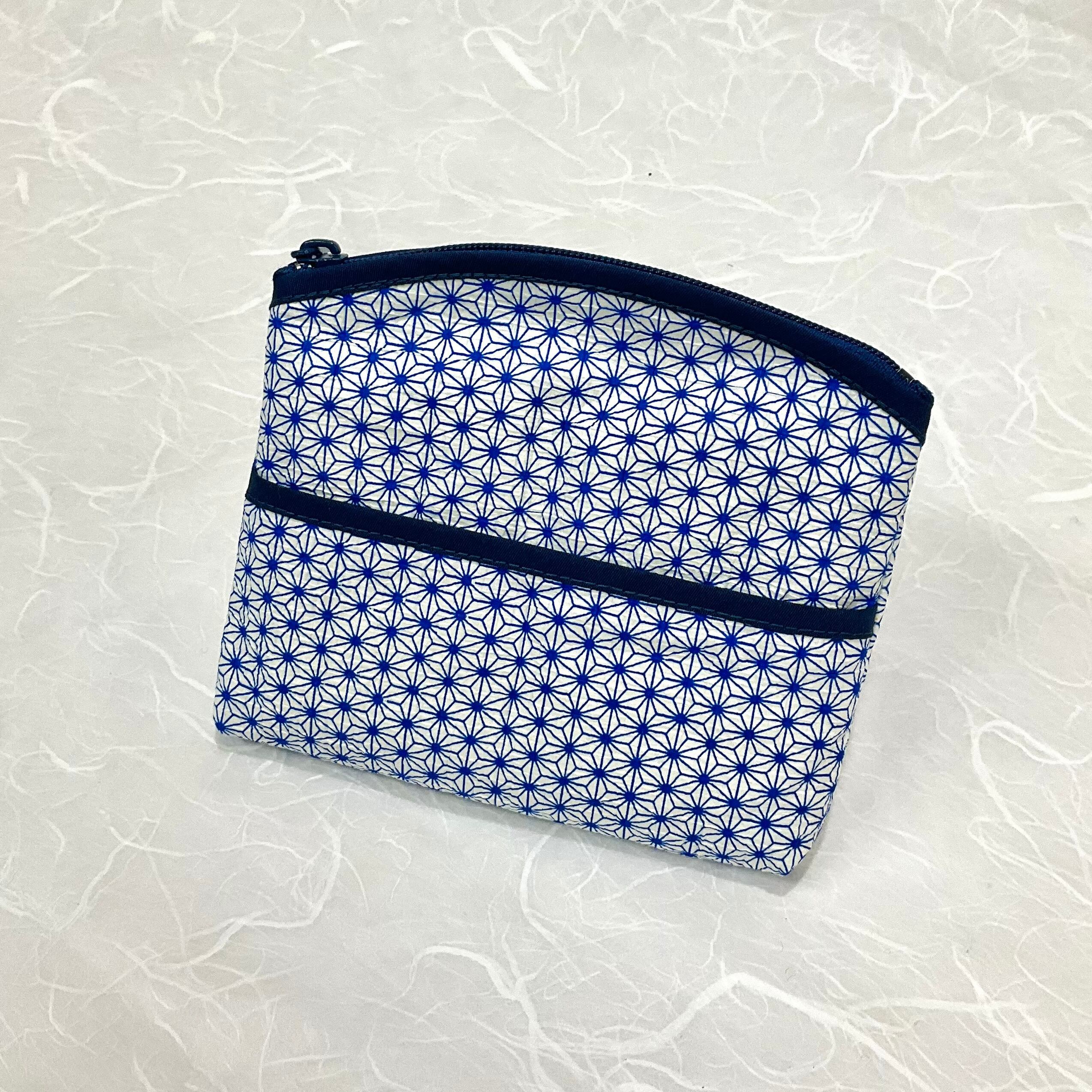 和紙製 縮み ティッシュポーチ 麻の葉柄 青