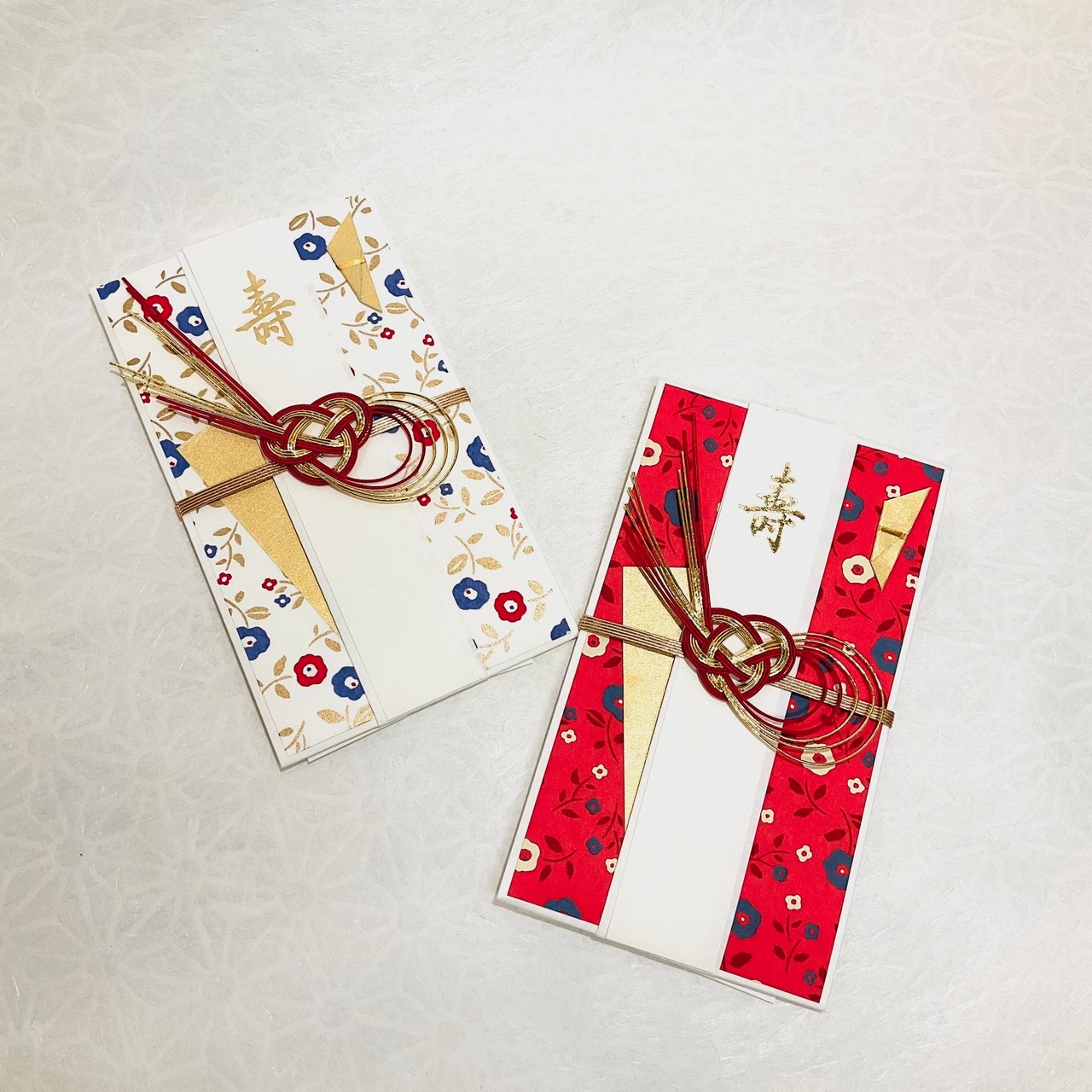 祝儀袋 結婚祝い 結び切り 京友禅紙使用【小花 白・赤】