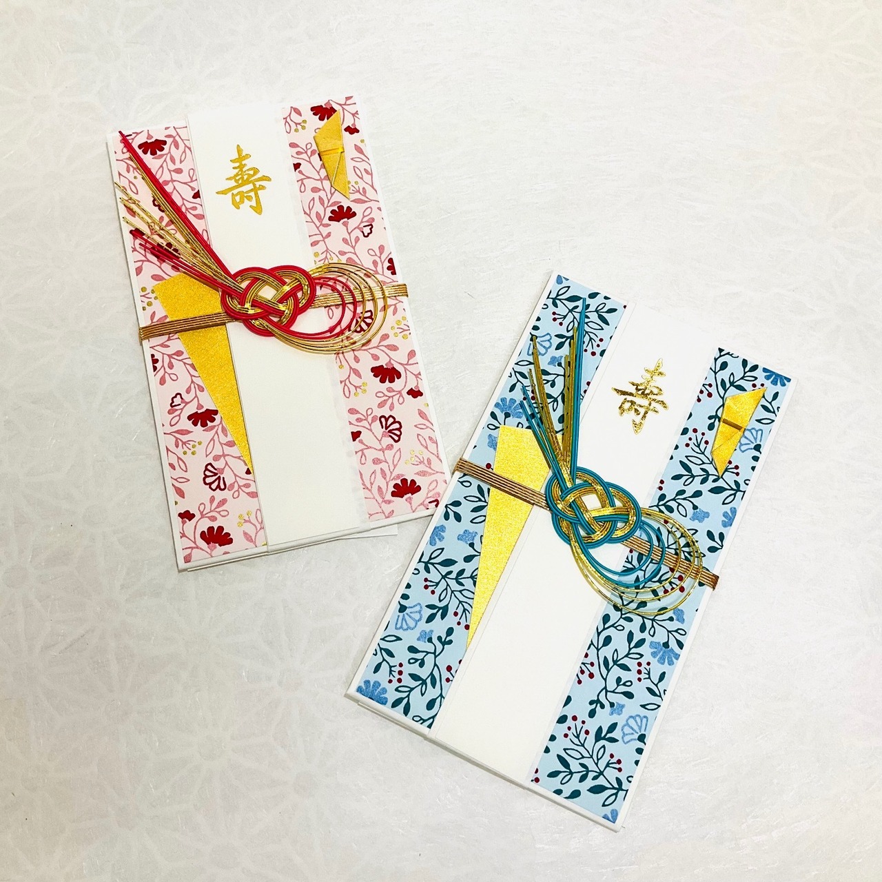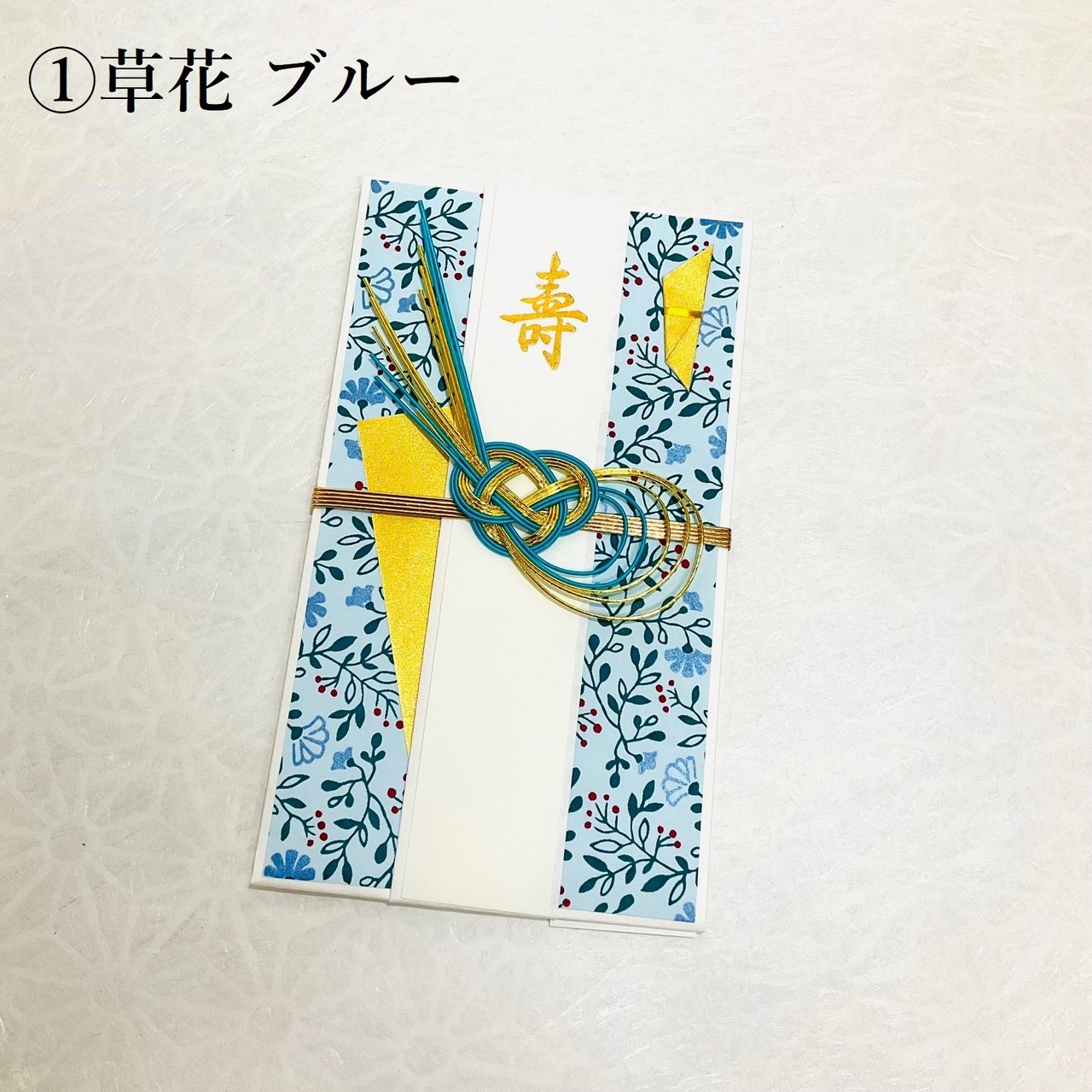 祝儀袋 結婚祝い 結び切り 京友禅紙使用【草花 ブルー・ピンク】