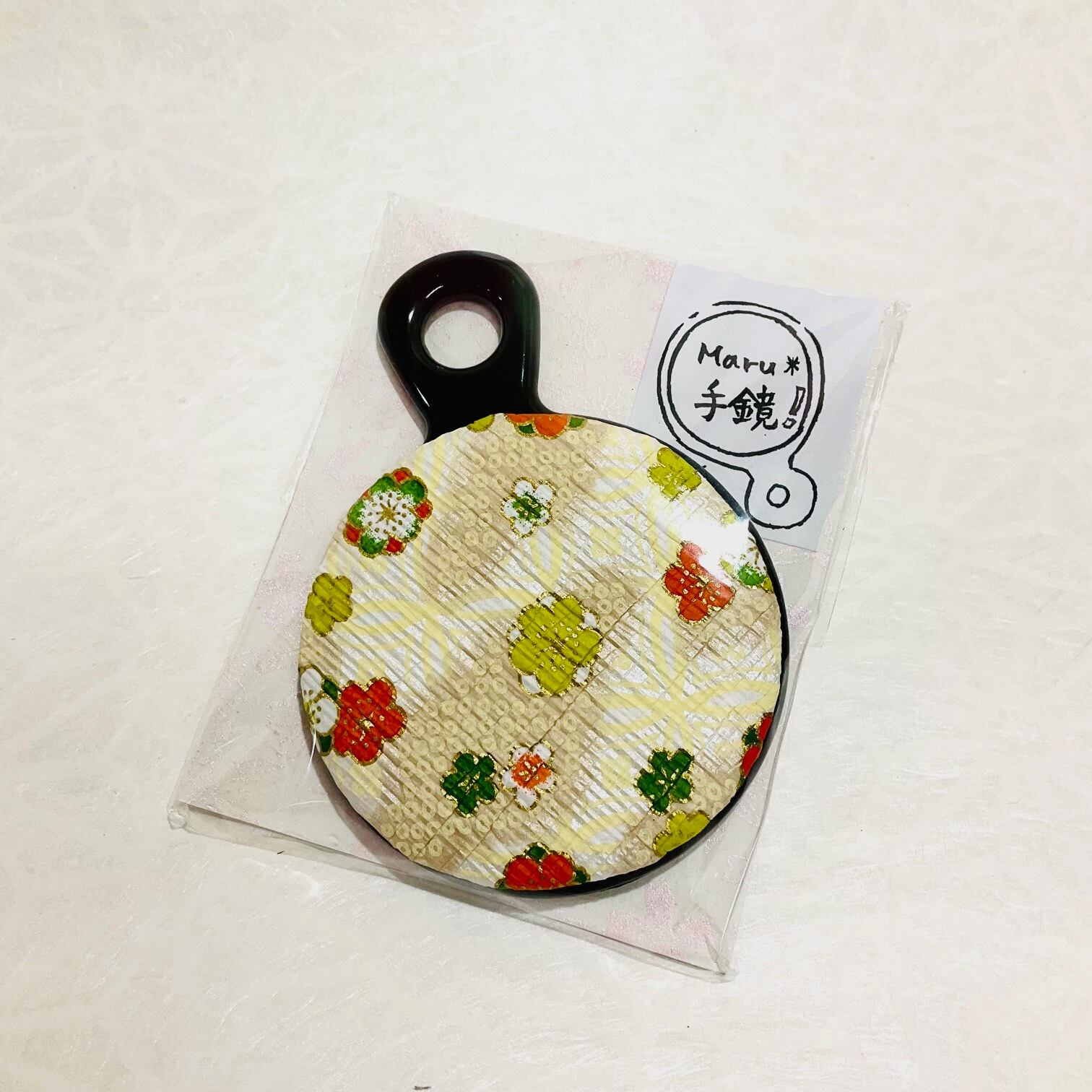 縮み加工を施した和紙製の丸い手鏡。