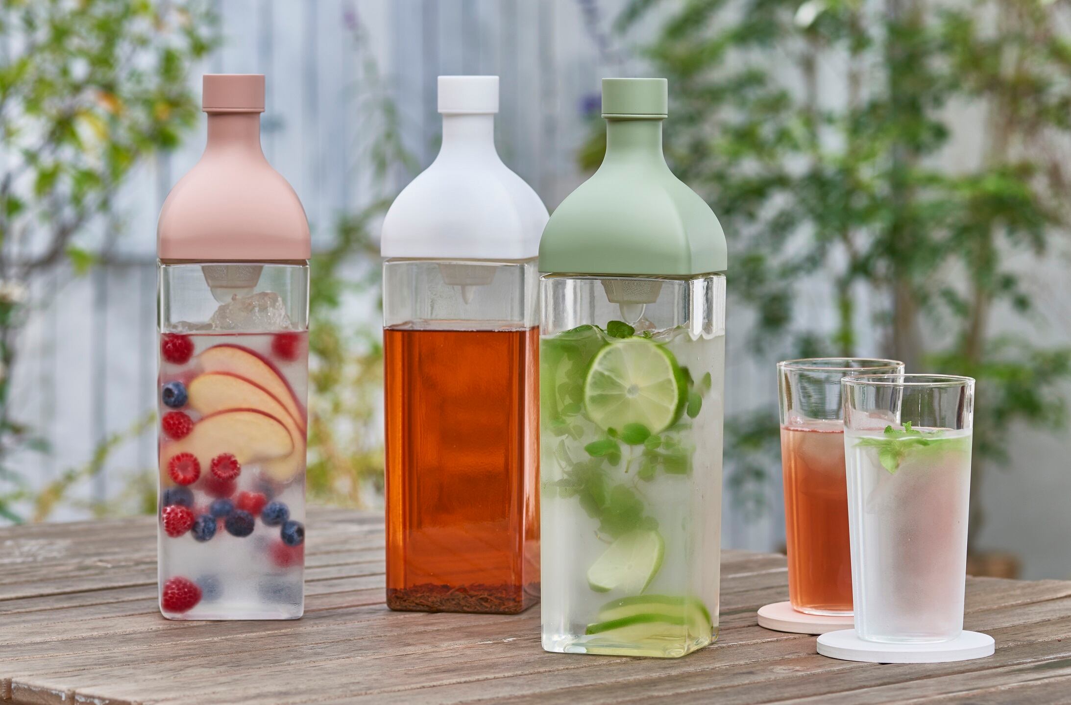茶葉から簡単に水出し茶が作れるフィルター付きボトルの大容量サイズです。